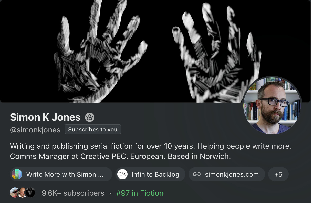 Simon K Jones and I were able to talk about his experiences in writing serialized stories the last 10 years and more specifically the last 5 year working on Tales from the Triverse - now completed and available on his publication.